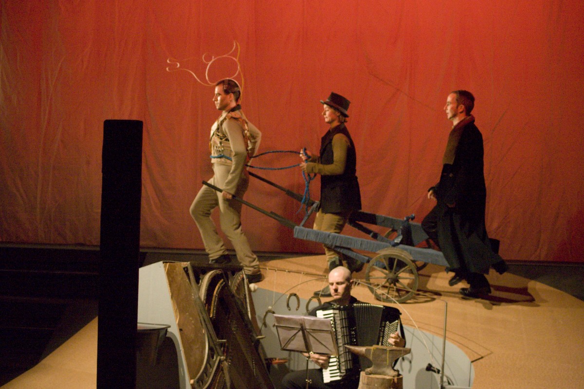 In einem rasanten Bilderbogen mit live Musik lässt das Ensemble des theaterforum kreuzberg das Leben eines Pferdes Revue passieren